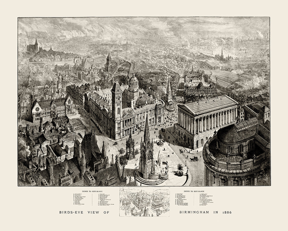 A birds eye view of Birmingham in 1886.