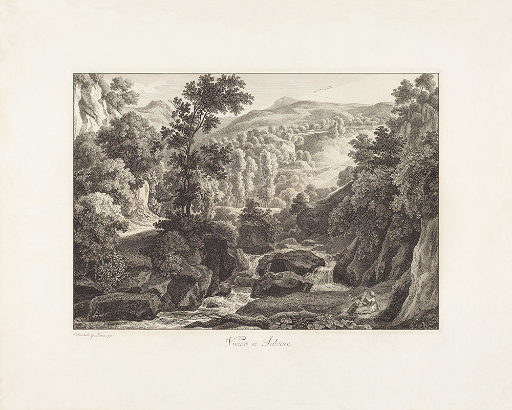 A vintage lithograph of the Italian landscape. Part of a collection.