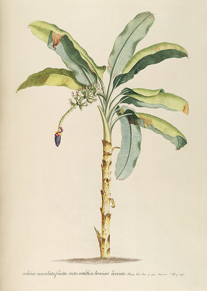 This vintage botanical study of a banana palm evokes a sense of nostalgia and timeless beauty. It complements many interior styles, and is particularly suited to Hamptons, Traditional, Colonial or Modern rustic interiors.