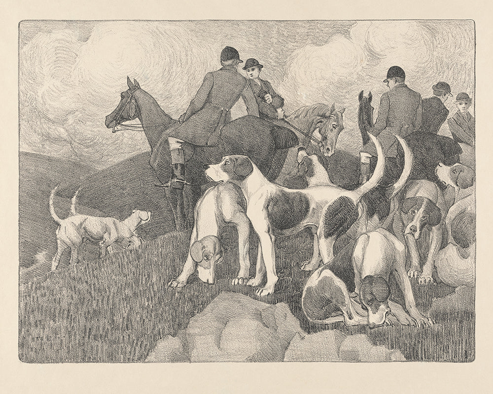 A delightful pencil sketch of a hunting scene. Part of a pair.