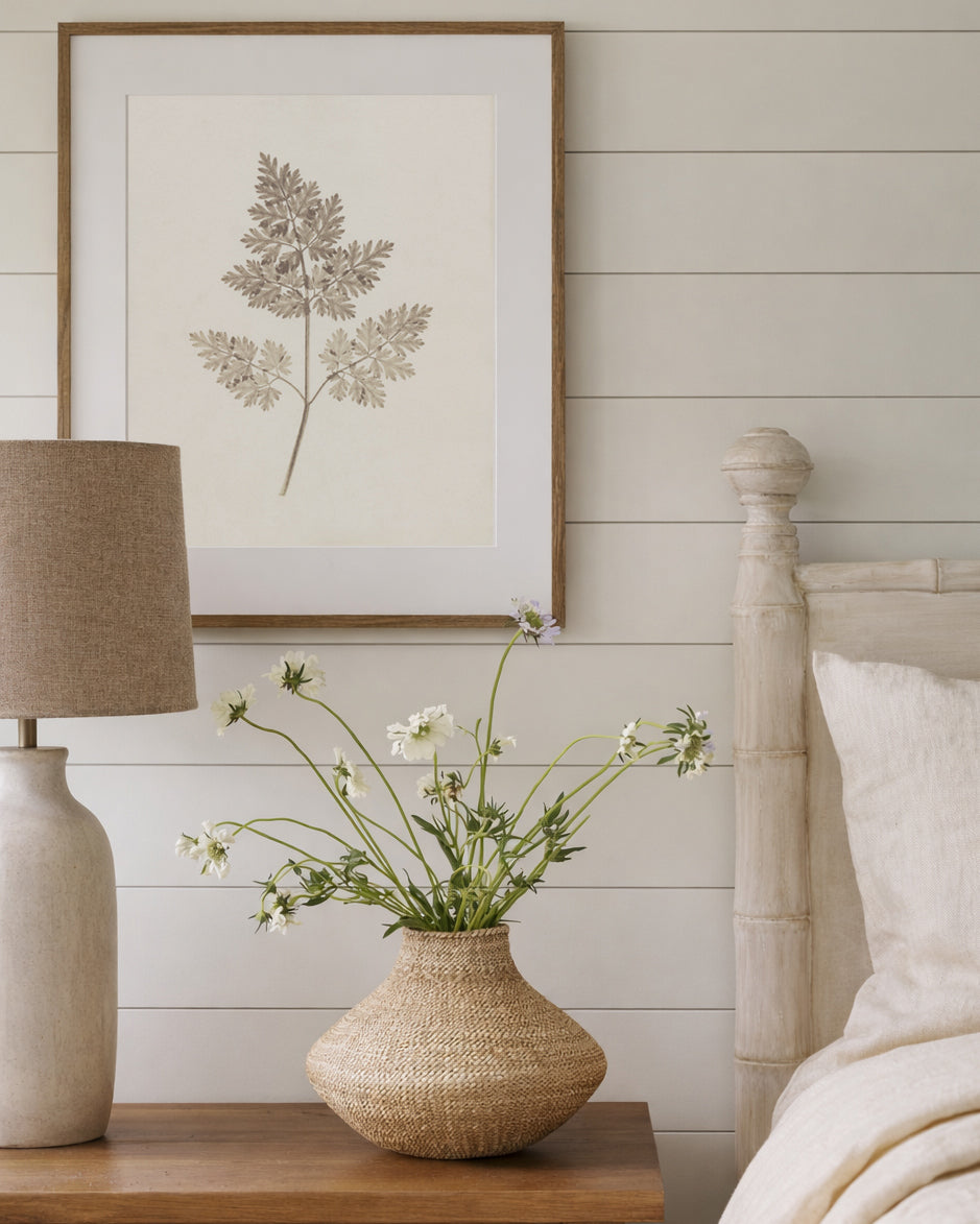 A softly rendered print of a leaf, finished in sepia & neutral tones.