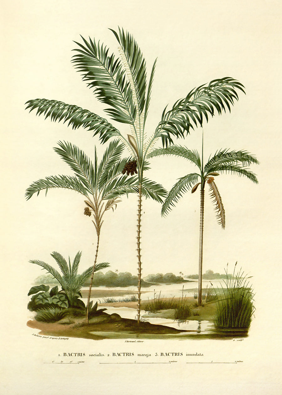 A vintage lithograph of palm trees. Print 4 in a series of 4 – use on its own, or in a group.