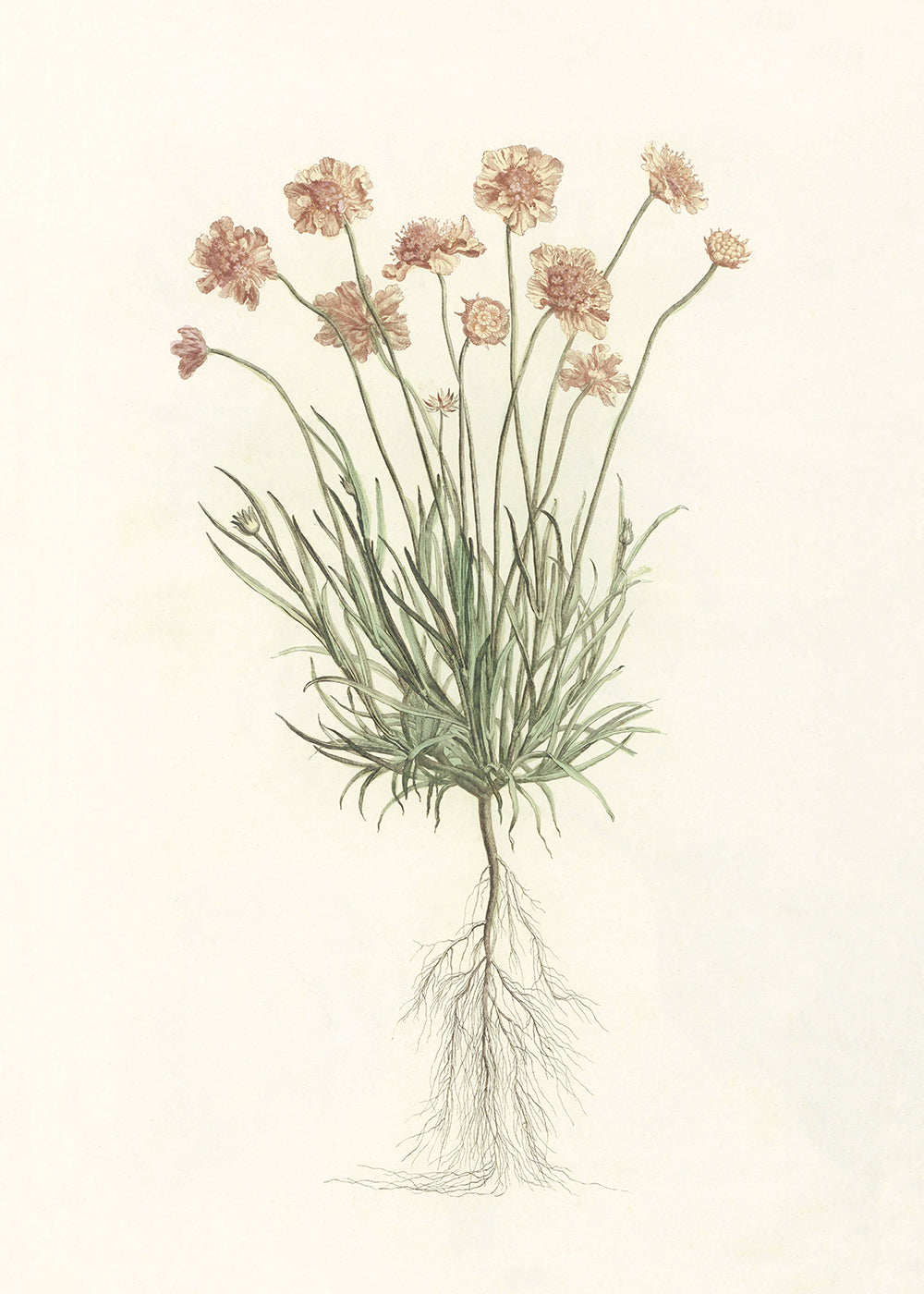 A pretty botanical print with delicate pastel flowers complete with roots.