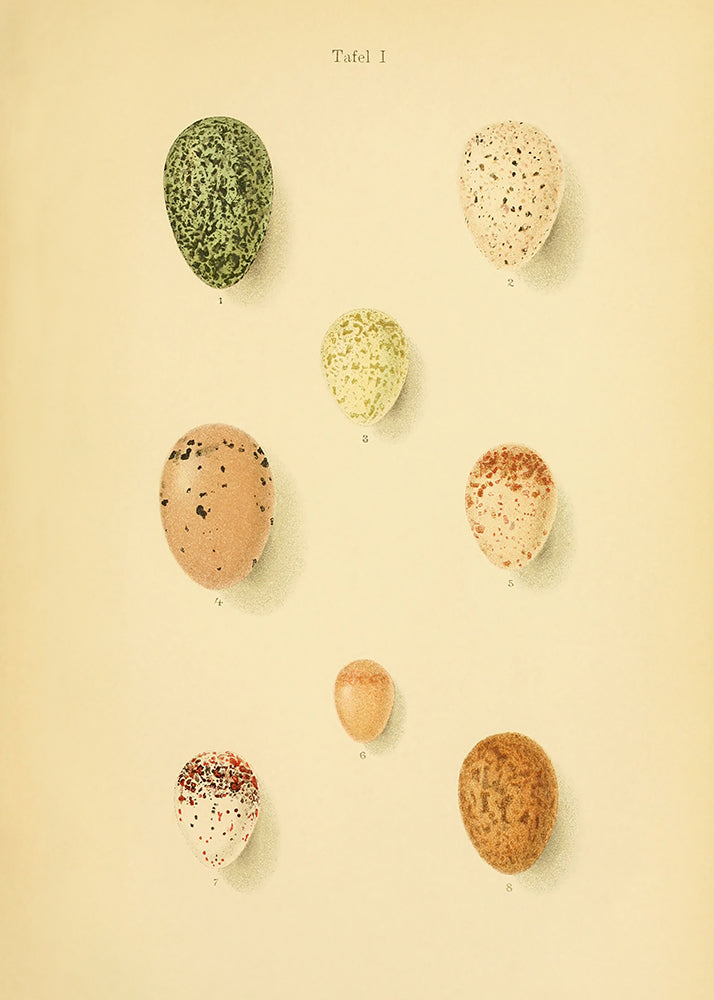 A delightful vintage lithograph of birds eggs. Part of a series of 4 prints.