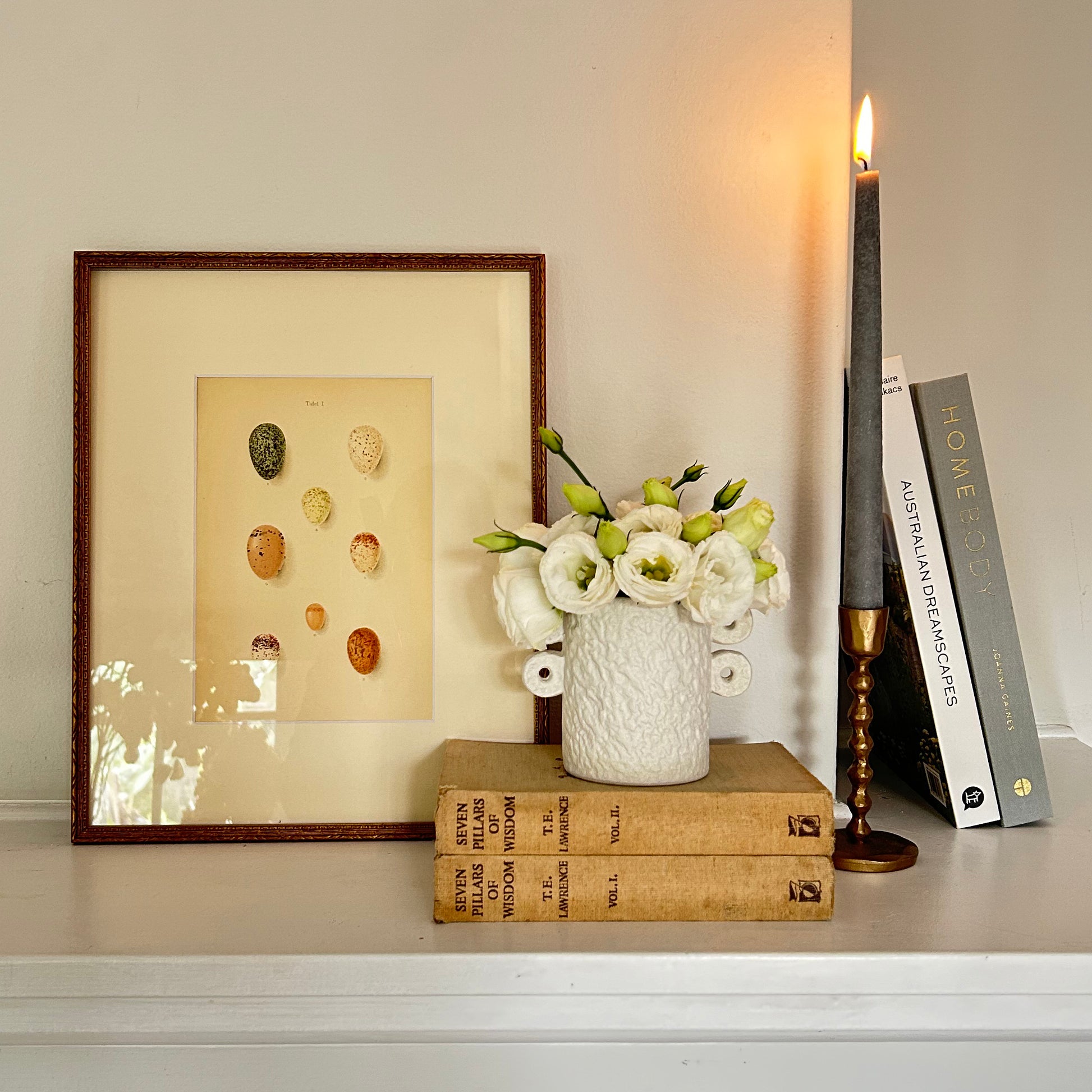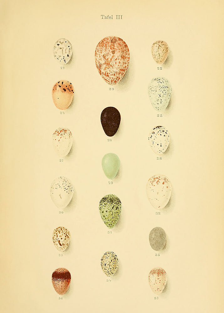 A delightful vintage lithograph of birds eggs. Part of a series of 4 prints.